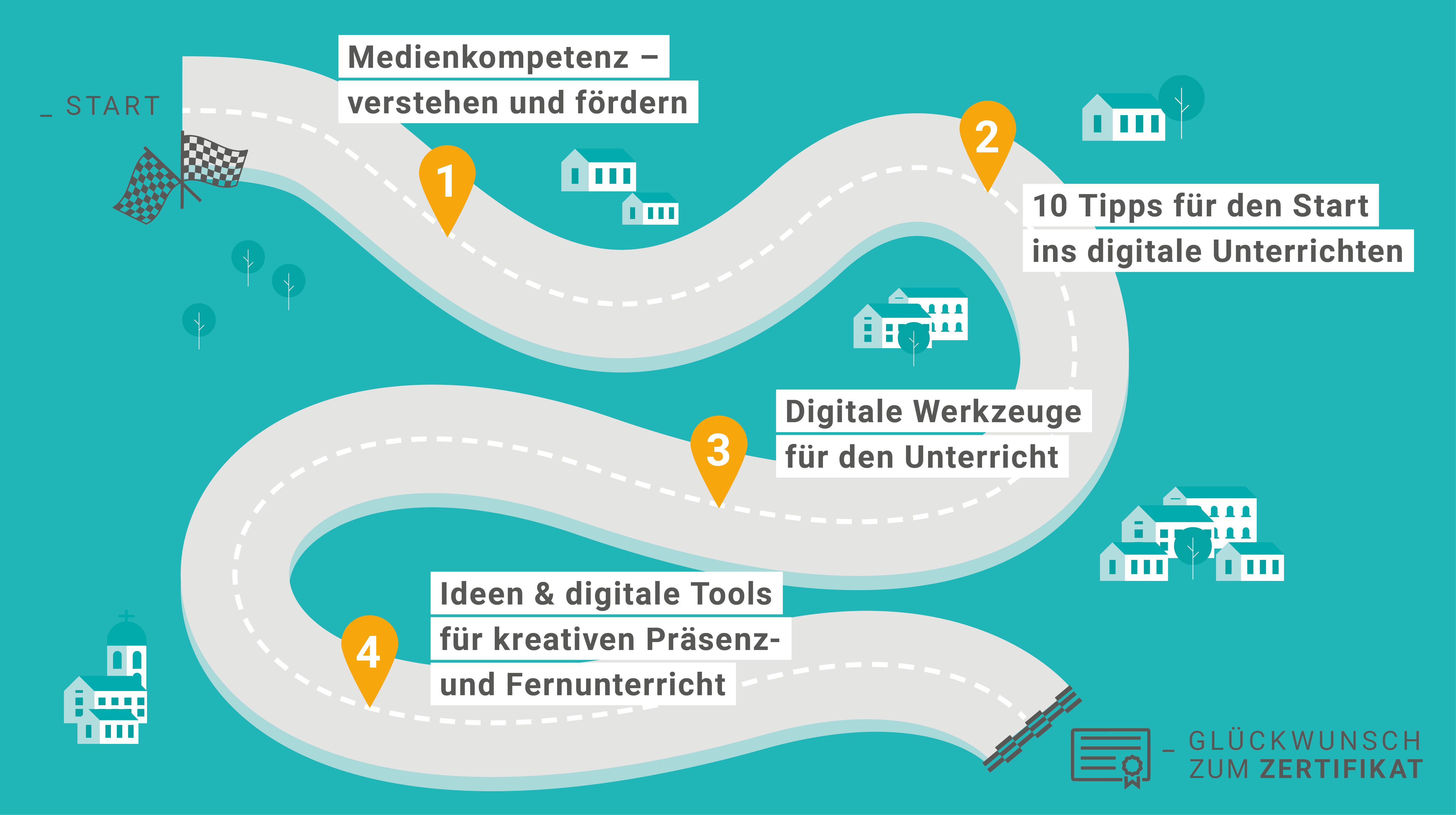 Neben den Online-Fortbildungen erhältst du zu jedem Lernpfad ein Handout und ein Lernpfadposter, welche dich während dem Lernpfad begleiten.