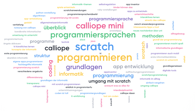 Die Lehrer*innen konnten aus verschiedenen Pflicht- und Wahl-Fortbildungen wählen. Mindestens drei mussten erfolgreich abgeschlossene werden, doch oft wurden darüber hinaus freiwillig noch weitere Fortbildungen erarbeitet. Besonders beliebt waren „Informatik im Alltag“, „Tipps und Tools für den Informatikunterricht“ und „Das kleine 1×1 der Programmiersprachen.“