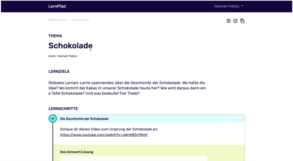 Lernpfade kannst du mit einzelnen Schüler*innen oder deiner ganzen Klasse teilen. Deine Schüler*innen arbeiten daran selbstgesteuert und eigenständig und können die einzelnen Lernschritte abhaken, Lernergebnisse hochladen und ihre Arbeitsergebnisse direkt im Lernpfad ablegen. So haben du und auch deine Schüler*innen immer die Übersicht über den aktuellen Fortschritt.