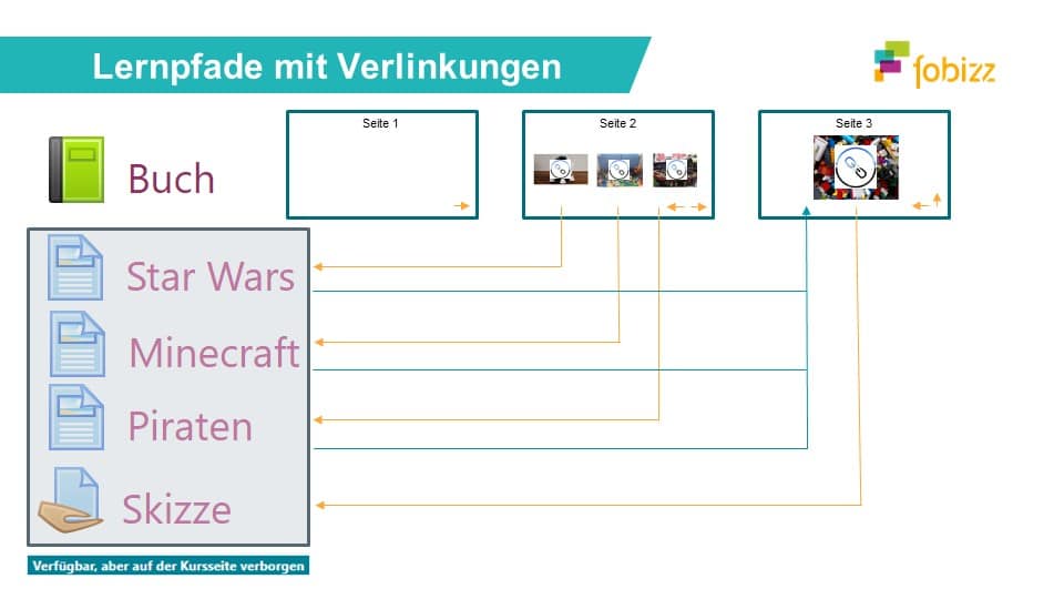 - Erstelle dir bei verzweigten Lernpfaden einen Ablaufplan. Fange auch hier mit einfachen Verzweigungen an.