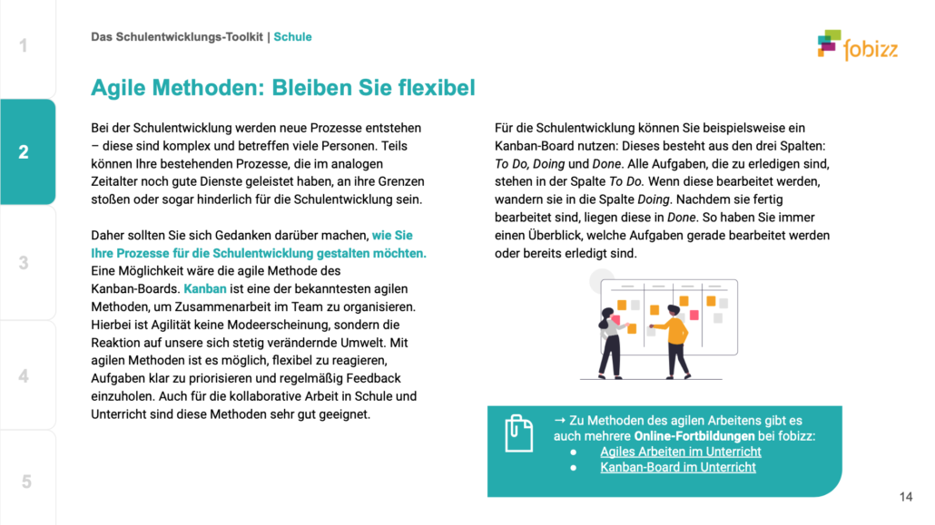 Das fobizz Schulentwicklungsprogramm begleitet Schulen ganzheitlich und nachhaltig im kontinuierlichen Prozess der digitalen Transformation. Denn Schulen für die Herausforderungen der digitalen Welt zu stärken und die digitalen Potenziale zu nutzen, ist ein kontinuierlicher Schulentwicklungsprozess.