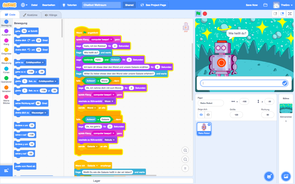Die grafische Programmiersprache Scratch ermöglicht den kreativen Einsatz von Technik und schafft einen Raum, in dem junge Menschen die Möglichkeit haben, Technik aus einer neuen Perspektive zu erfahren und auszuprobieren.